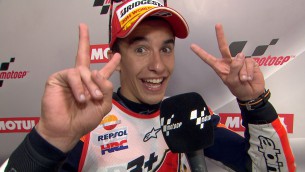 Sebuah Marquez gembira menjelaskan, "Kau tahu, lomba tidak terlalu penting hari ini! Mungkin aku tidak naik seperti biasa, saat aku merasa sedikit berbeda. Sulit untuk menyalip dan aku tidak ingin kesalahan. Aku punya dua kesalahan dalam balapan terakhir tapi kami punya judul! Ini luar biasa untuk mengambil di rumah. Terima kasih kepada keluarga saya dan Honda. "