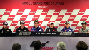 Dalam konferensi pers pra-event menjelang Grand Prix Motul Jepang pada hari Kamis Marc Marquez, Valentino Rossi, Jorge Lorenzo, Aleix Espargaro, Hiroshi Aoyama dan Maverick Viñales ditujukan media saat mereka mempersiapkan diri untuk memulai pertama dari triple kusut header ras akhir pekan ini.